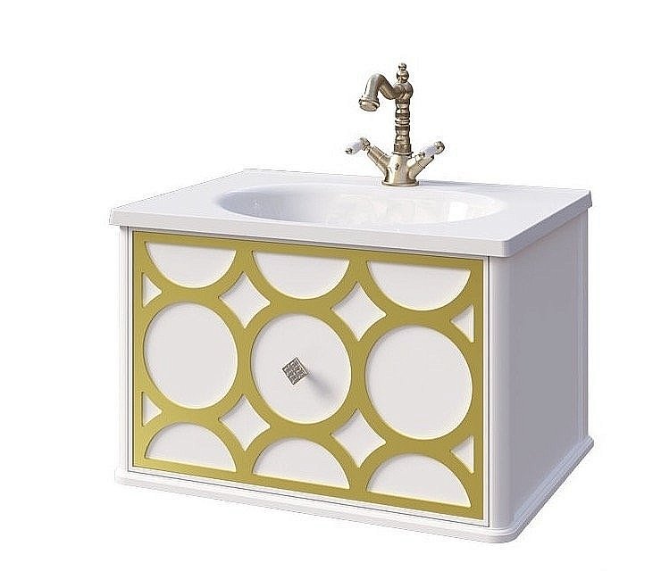 В комплект поставки входит подвесная тумба с одним выдвижным ящиком оснащена раковиной из литьевого мрамора. Зеркало и пенал заказываются отдельно. Помимо этого, есть возможность выбора зеркал в багетной раме ручной работы.