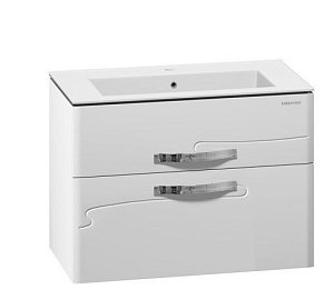Подвесная тумба-умывальник с двумя выкатными ящиками оснащенным системой плавного закрывания.