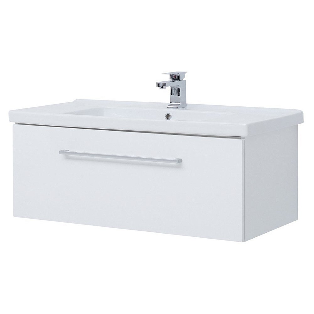 Комплектация: Тумба BIG INN, 100 см, подвесная, 1 ящик + выдвижной внутренний ящик, белый глянец; ГАРМОНИЯ, 100 см, мебельный умывальник, керамический.
