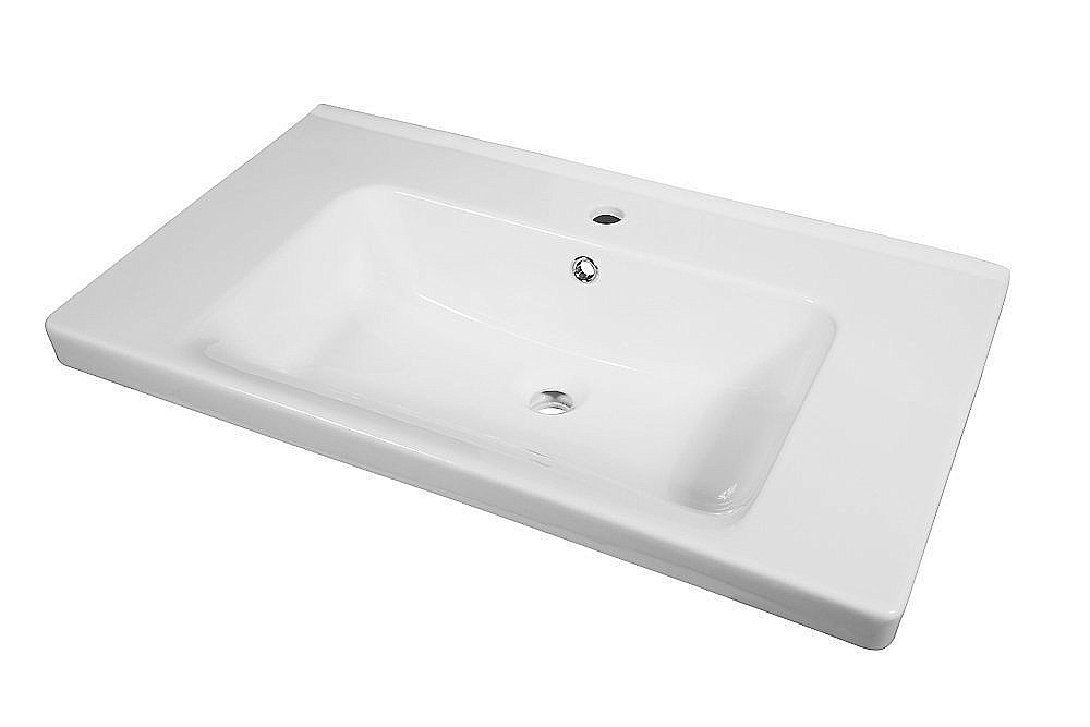 Комплектация: Тумба BIG INN, 80 см, подвесная, 1 ящик + выдвижной внутренний ящик, белый глянец; ГАРМОНИЯ, 80 см, мебельный умывальник, керамический.