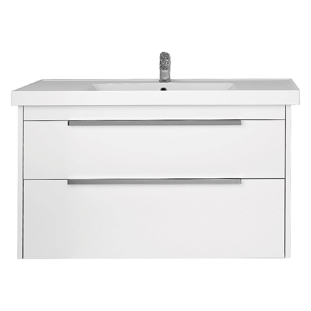 Комплектация: Тумба PRIME, 90 см, подвесная/напольная, 2 ящика, белый глянец; ГРЭЙС, 90 см, мебельный умывальник, керамический.
