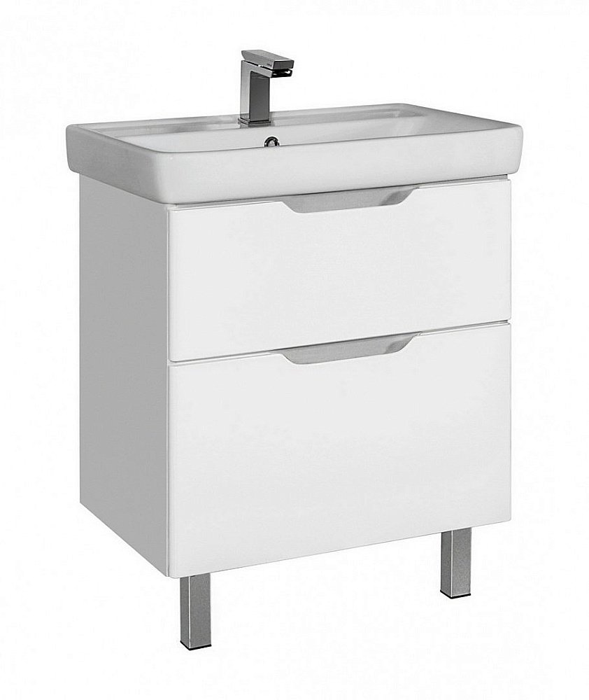 Комплектация: Тумба Q PLUS, 70 см, подвесная/напольная, 2 ящика, с опорами, белый глянец; Q, 70 см, мебельный умывальник, керамический.