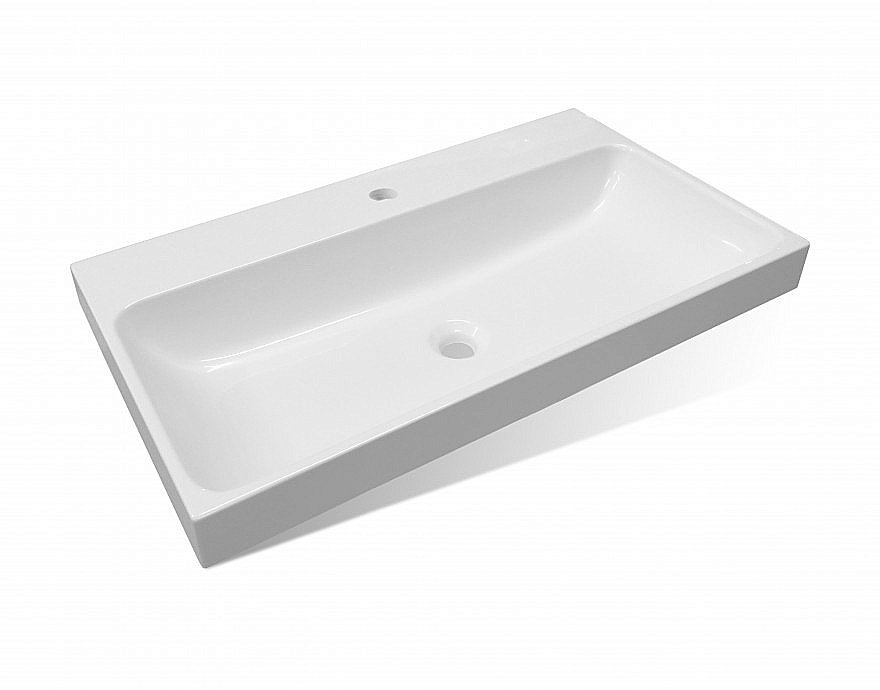 Раковина матовая изготовлена из литьевого мрамора без системы слива-перелива и с 1 отверстием под смеситель и врезается в столешницу из массива дерева.