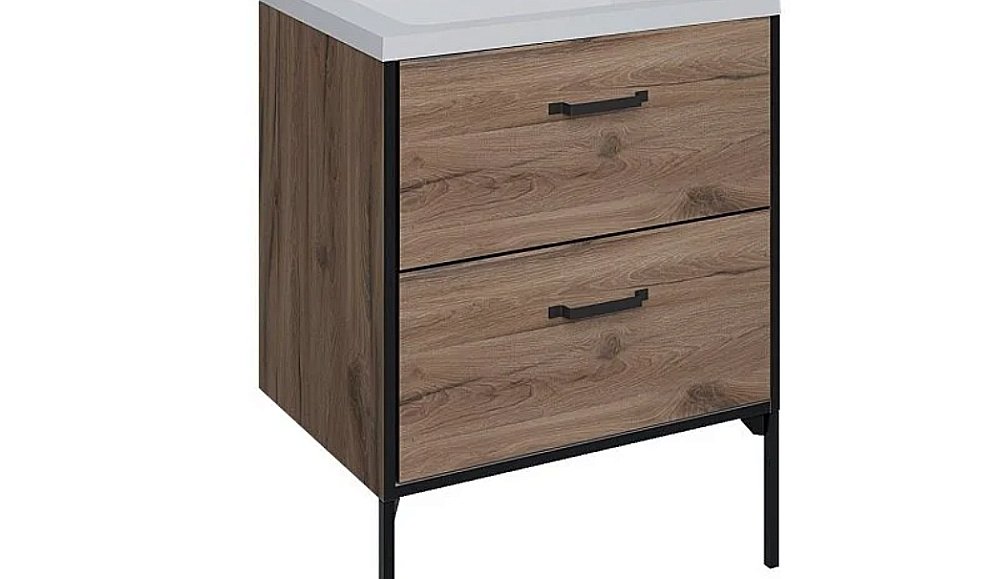 Преобразите свою ванную комнату с напольной тумбой "НЕРО-70 см". Эта стильная тумба с двумя вместительными выдвижными ящиками обеспечит удобный доступ к вашим вещам и позволит поддерживать порядок. Размеры тумбы составляют 66 см в ширину, 78 см в высоту и 44 см в глубину, что делает её идеальной для различных пространств. Корпус и фасады выполнены из высококачественного влагостойкого ЛДСП в элегантном цвете альпийского дуба, а черная кромка толщиной 16 мм придаёт тумбе современный вид.