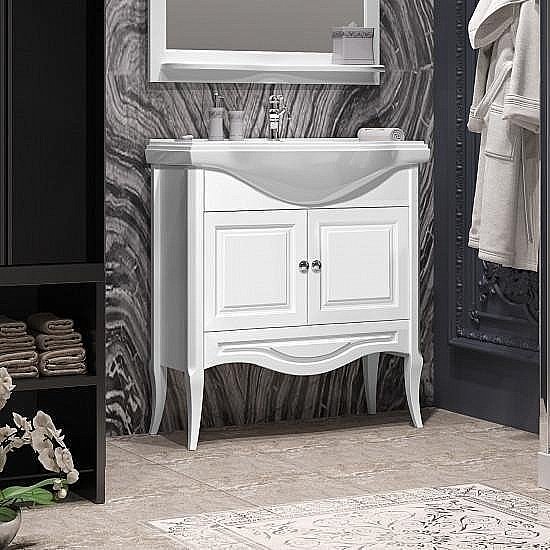 Данный комплект мебели выполнен в классическом стиле и идеально сочетается с элементами из этой коллекции и другими предметами классики, создавая в вашей ванной комнате неповторимый ретро-дизайн.