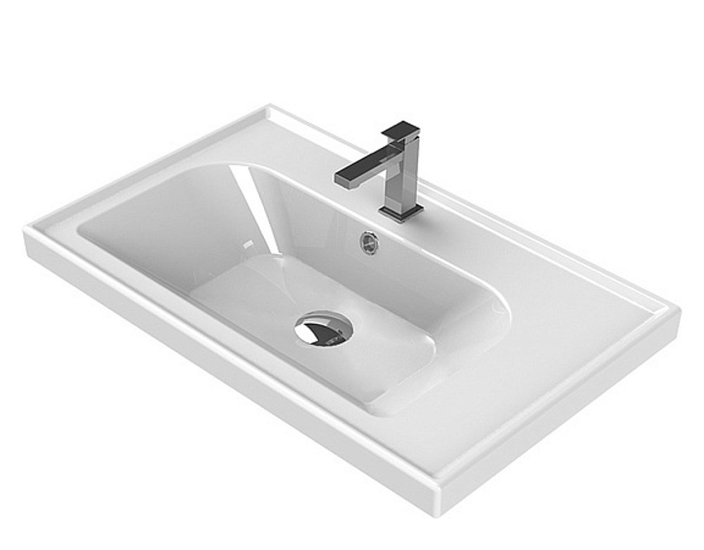 Раковина изготовлена из керамики с одним отверстием под смеситель и системой слива-перелива.