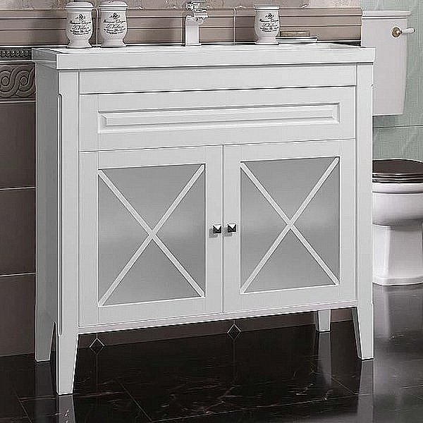 Данный комплект мебели выполнен в классическом стиле и идеально сочетается с элементами из этой коллекции и другими предметами классики, создавая в вашей ванной комнате неповторимый ретро-дизайн.