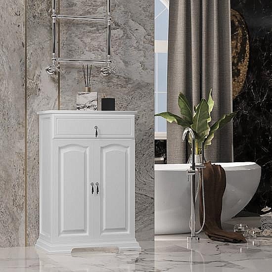 Данный комплект мебели выполнен в классическом стиле и прекрасно сочетается с предметами из этой коллекции, а так же другими элементами классики, создавая в вашей ванной комнате неповторимый ретро-дизайн.