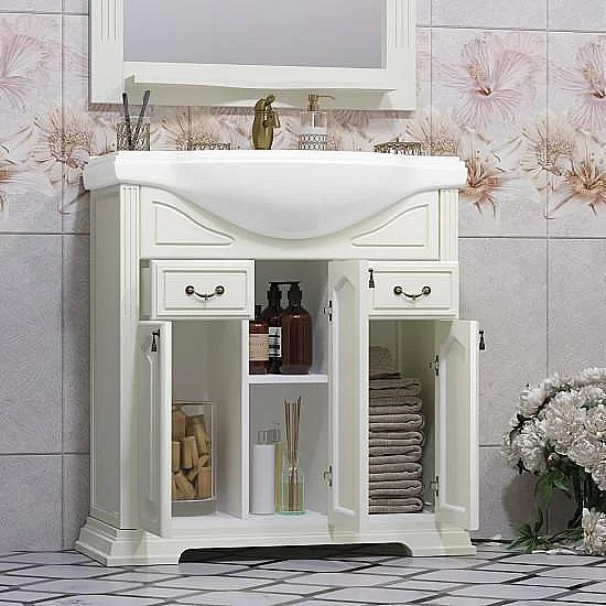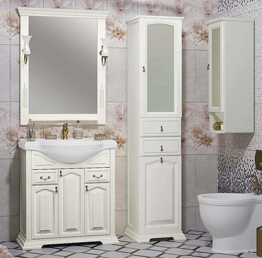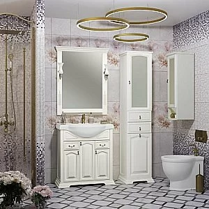 Данный комплект мебели выполнен в классическом стиле и прекрасно сочетается с предметами из этой коллекции, а так же другими элементами классики, создавая в вашей ванной комнате неповторимый ретро-дизайн.