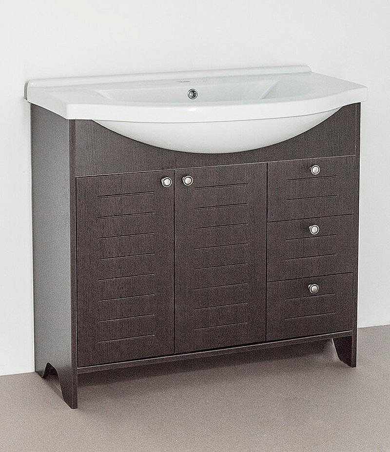 Тумба напольная бренда "Style Line" коллекции "Кантри" имеет оригинальные ручки "под бронзу", петли на дверцах с механизмом плавного закрывания, декоративную фрезеровку фасадов. Сборка изделия с помощью эксцентриковых стяжек Hafele; все материалы полностью влагостойкие. Данная тумба предусматривает открытую подводку воды.