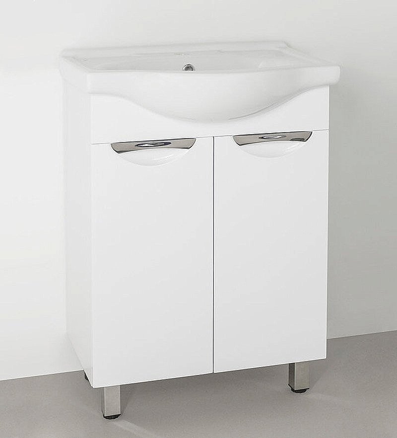 Style Line Жасмин выполнена в современном стиле. Материал корпуса из ДСП, материал фасада имеет глянцевое покрытие из МДФ в пленке. Хромированные ручки на фасадах выдерживают логику стиля. Тумбы комплектуются фаянсовыми раковинами Уют 55, Селигер 60, Стелла 65, Балтика 70, Коралл 82, Эльбрус 80и 100.
