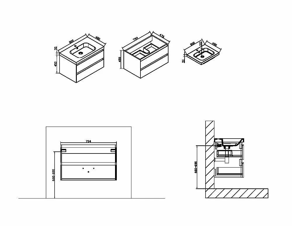 Тумба с ультратонкой современной белой раковиной будет центральным элементом небольшой ванной комнаты в стиле лофт. Модель изготавливается из влагостойких материалов и оснащена доводчиками, обеспечивающими плавное закрывание ящика. Края фасада и корпуса фрезерованы под 45 градусов, что придает изделию дополнительной элегантности.