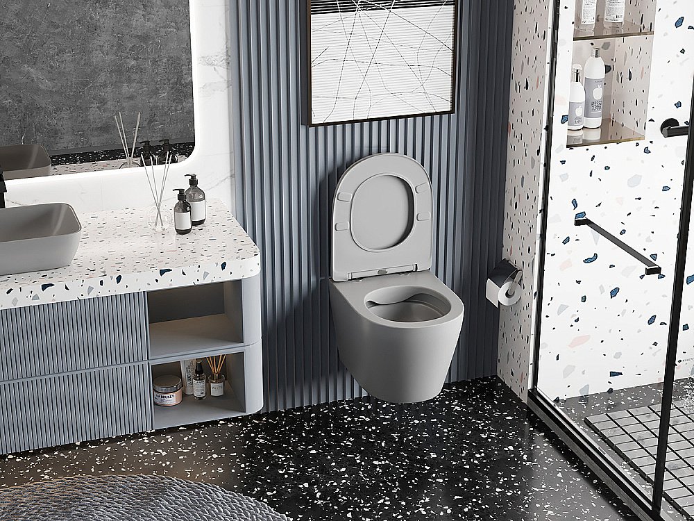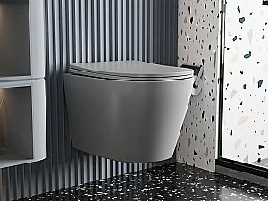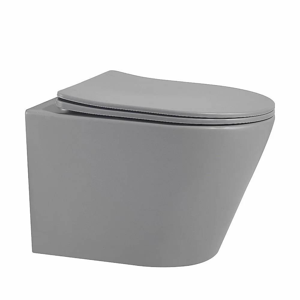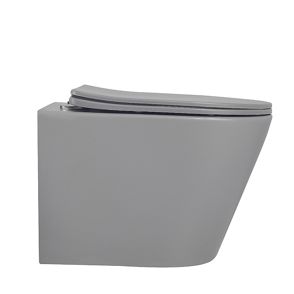 Унитаз подвесной ABBER Bequem AC1102MG с крышкой микролифт, безободковый, серый матовый