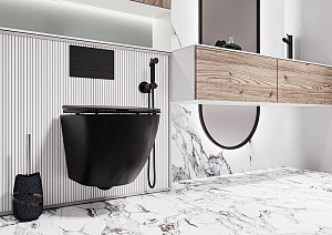 Впервые в доступном сегменте уникальная технология Twin Side – черные унитазы с двумя типами покрытий: матовое снаружи, глянцевое – внутри;