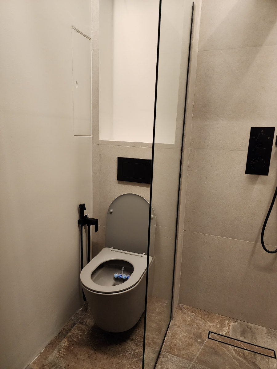 Конструкция крепится с помощью инсталляции в стену. Инсталляция соединяет чашу с коммуникациями — выводом в канализацию и системой подачи воды для смыва. Все это убирается в стену на этапе ремонтных работ, оставляя снаружи чашу с кнопкой выпуска воды. Подобное решение позволяет эффективно использовать пространство комнаты и убирает визуальный шум в виде водопроводных и канализационных труб.
