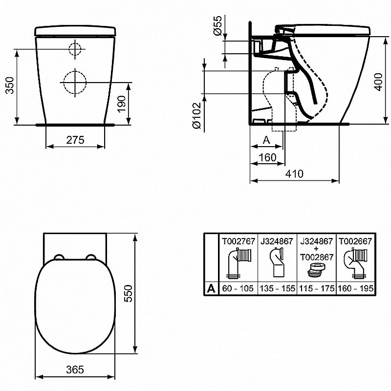 Унитаз приставной Ideal Standard Connect E052401 белый, безободковый