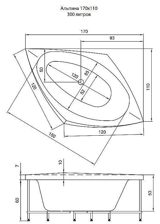 Ванна акриловая Aquatika Альпина H2O 170х110