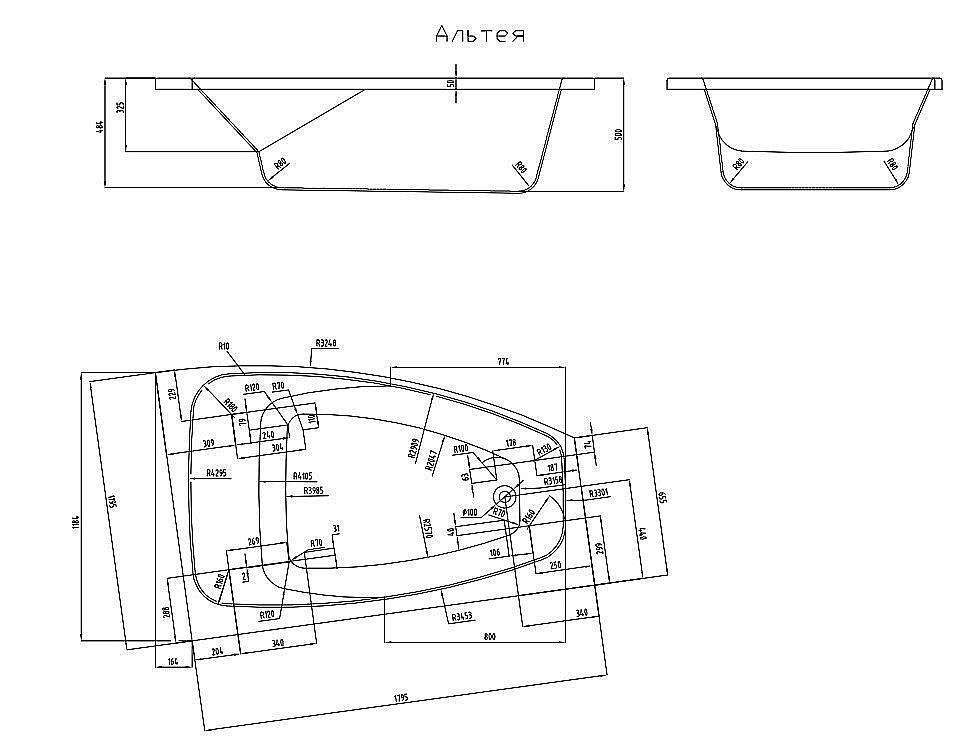 Акриловая ванна Aquatika Альтея Standart 180х120 Правосторонняя