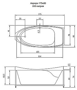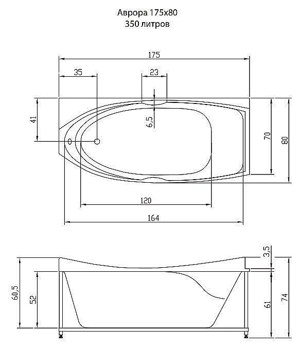 Акриловая ванна Aquatika Аврора Standart 175х80 Правосторонняя