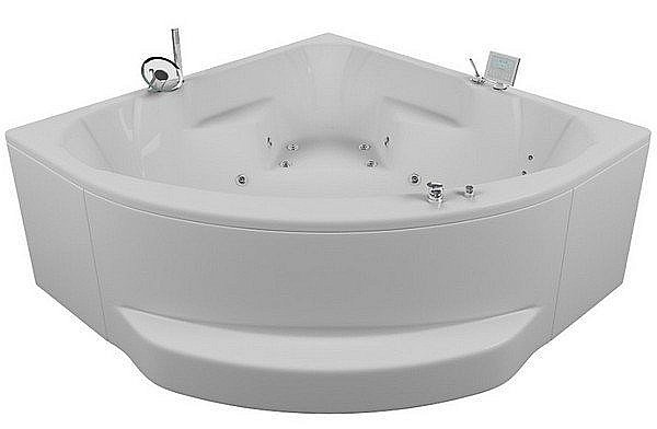 Угловые ванны из акрила по своей форме повторяют четверть круга. Имеют глубокую чашу с выпуклыми бортами и многоуровневой внутренней поверхностью, разделенной на зоны для сиденья, подлокотники и полочки.