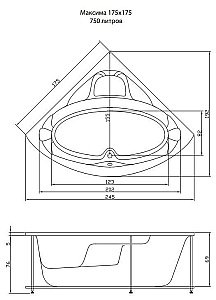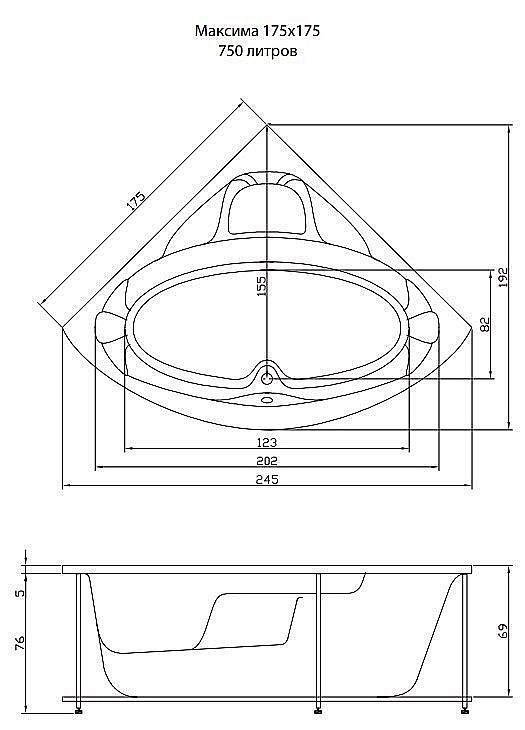 Ванна акриловая Aquatika Максима Аквалюкс 175х175