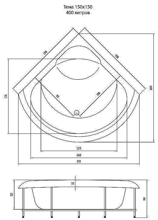 Акриловая ванна «Тема» сможет заменить Вам бассейн – отсутствие многоярусного сиденья с лихвой компенсируется большим объемом чаши – 500 литров. В ней можно не только наслаждаться вечерним купанием, но даже плавать.
