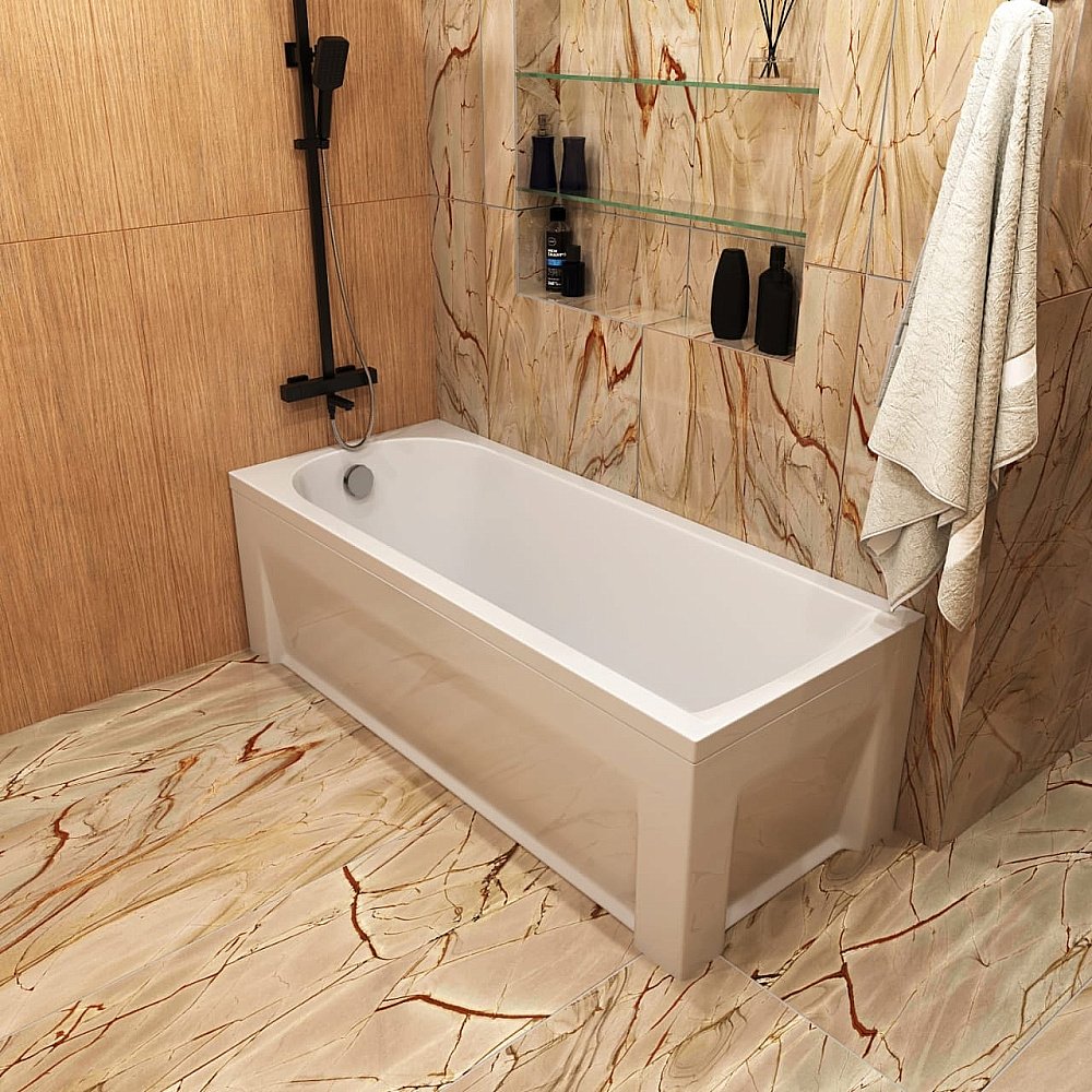 Эта акриловая ванна великолепно впишется в любой интерьер благодаря своим компактным размерам 170x70 см. Она прекрасно подойдет для небольших ванных комнат, где каждый сантиметр имеет значение, не жертвуя при этом ни комфортом, ни качеством.
