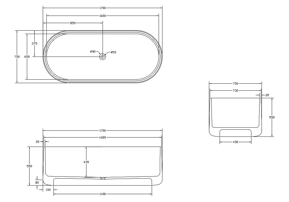 Ванна Abber 170х75 AT9708Aquamarin бирюзовая