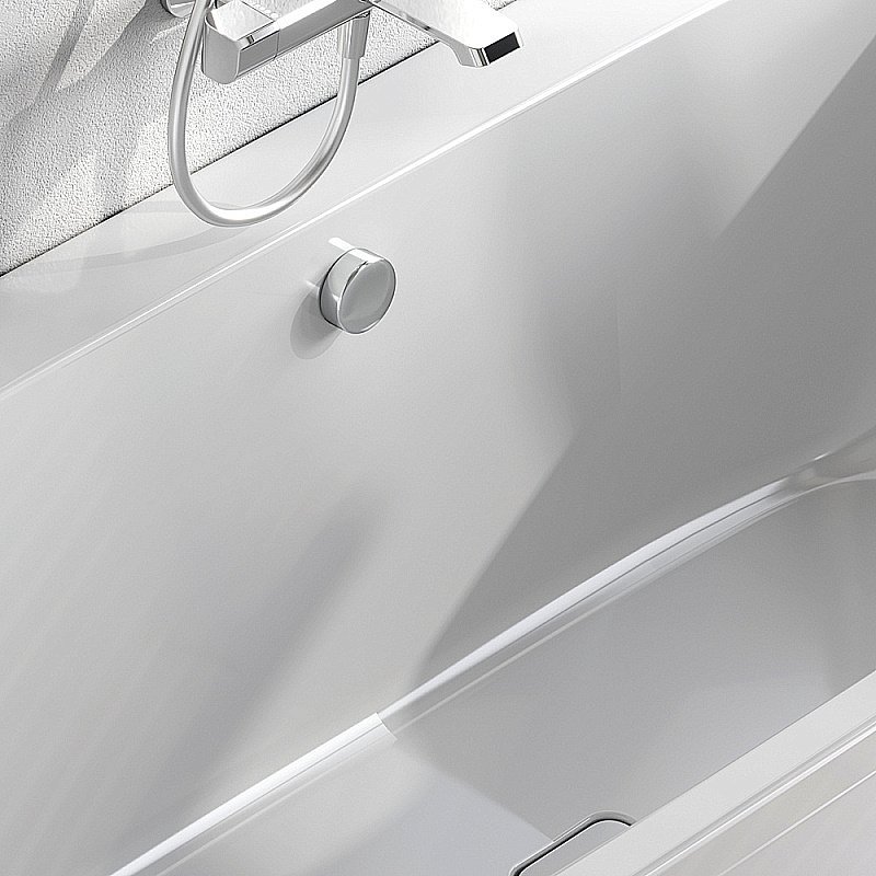 Характерный дизайн: сочетание широкого борта с одной стороны с ультратонким бортом с другой стороны создает неповторимую квинтэссенцию стиля. А декоративная заглушка слива, повторяющая форму самой ванны, станет яркой деталью в интерьере.