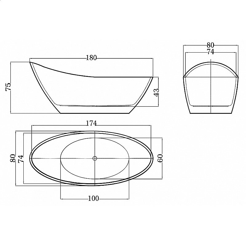 Ванна акриловая Esbano London ESVALONDW 180х80 белая