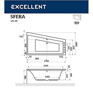 Асимметричная акриловая ванна EXCELLENT Sfera 170x100. Ванна изготовлена из 4 мм. акрилового листа с антибактериальным свойством LUCITE Microban. Стандартная комплектация включает саму ванну. По желанию заказчика ванна может быть укомплектована различными видами гидромассажных систем.
