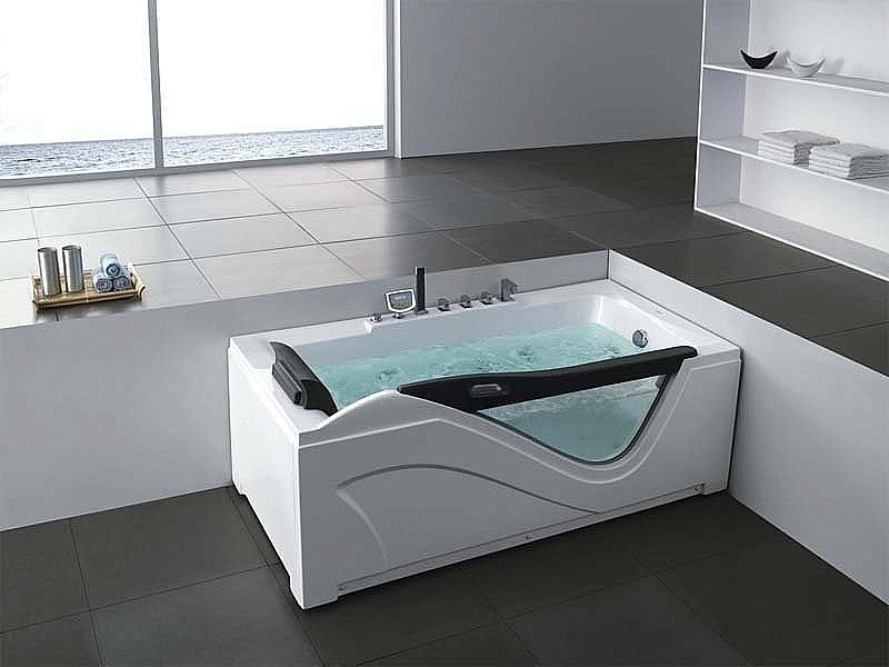 Ванна акриловая Gemy Glass Panel G9055 181x90 белая с гидромассажем