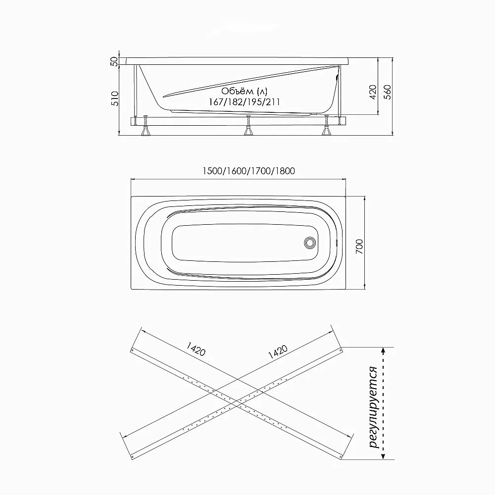 Ванна акриловая Niagara Atrio NG-A18070 180х70 белая