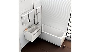 Вы можете создать ванную комнату как единое целое, а именно: подобрать в едином дизайне ванну, душевой уголок, умывальник с мебелью, смеситель, душевой поддон или канал.