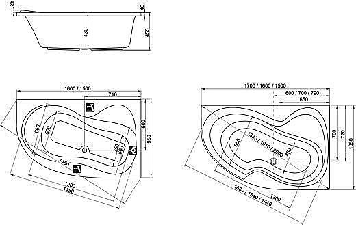 Ванну можно укомплектовать гидро/аэро массажем, хромотерапией, подводным освещением.