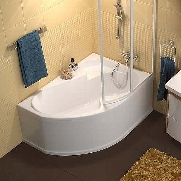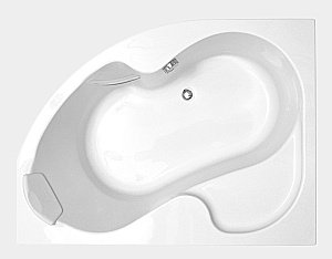 Акриловая асимметричная ванна серии Rosa с оригинальной формой и практично решенными внешними размерами.