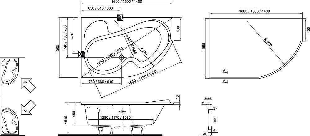 Размер:140x105 см; Л/П Ванна Rosa I подходит и для небольших ванных комнат. К ванне Rosa I можно приобрести аксессуары – опоры, сточный комплект для ванны, в случае необходимости переднюю панель, подголовник, ручку.