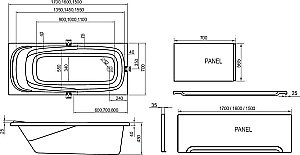 К ванной можно приобрести аксессуары :жесткая рама, сточный комплект ванны,  передние и боковые панели из нержавеющей стали с универсальной ручкой, экраны под ванну VS2, VS3, VS5, PVS1, BVS1, BVS2, EVS1) или ванные двери AVDP3.