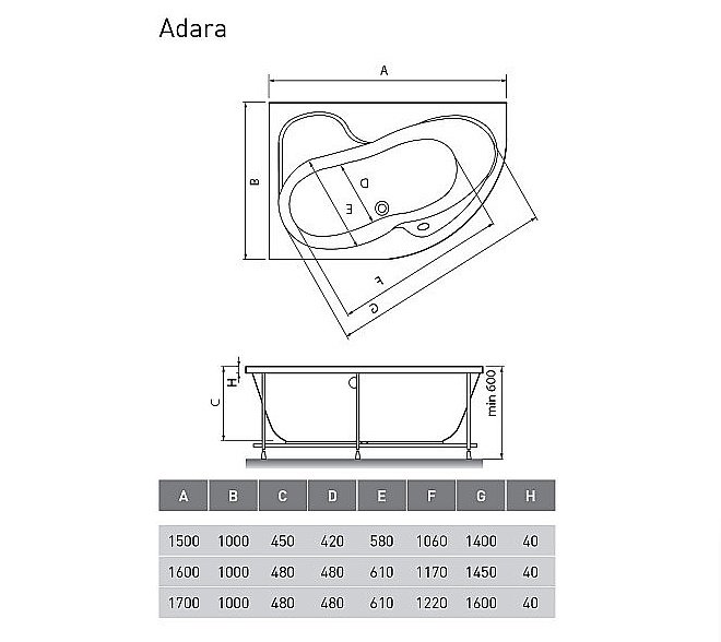 Широкие борта ванны служат прекрасной площадкой для размещения на них различных аксессуаров, могут служить как столиком, так и сиденьем. Adara несомненно украсит собой любую ванную комнату. Ванна может быть выполнена как в левом, так и в правом зеркальном виде.