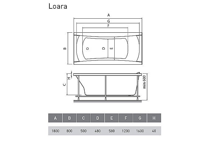 Ванна акриловая Relisan Loara Гл000011735 180x80 белая
