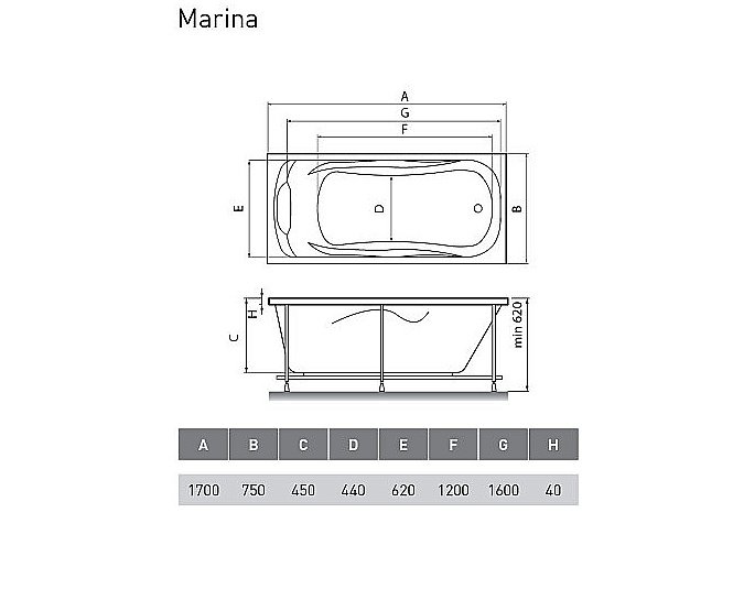 Ванна акриловая Relisan Marina Гл000008874 170x75 белая