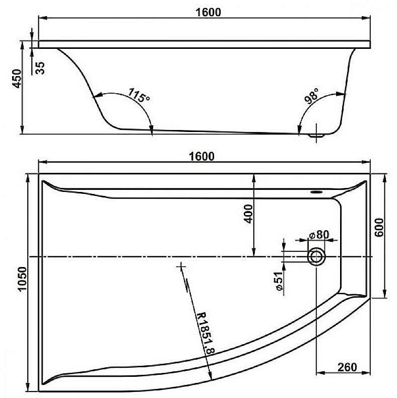 Ванна акриловая Vagnerplast Veronella 160x105 левосторонняя