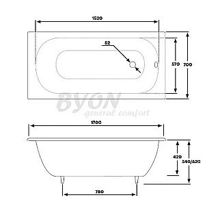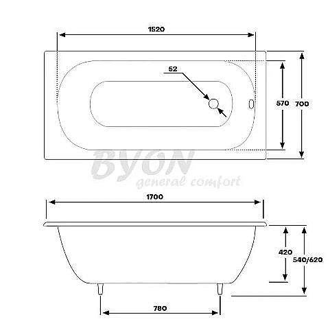 Белая чугунная ванна с идеально ровным покрытием высокопрочной эмали. Все ванны комплектуются ножками для крепления с подъемными болтами для регулирования по уровню относительно пола.