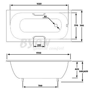 Ванна чугунная BYON B13 V0000226 170x70 с ручками