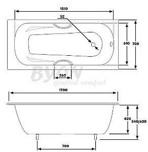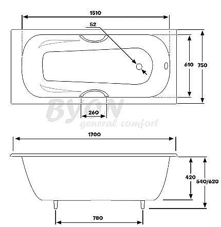 Ванна чугунная BYON B15 V0000221 170x75 с ручками