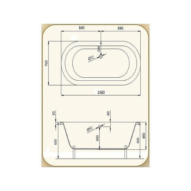• Окрас внешнего борта ванны по каталогу RAL оплачивается дополнительно.