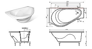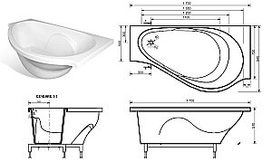 Ванна Эстет Грация 170x94 цвет по RAL левая