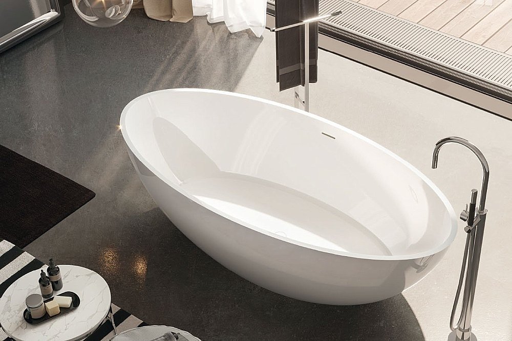 • Ванна отдельностоящая овальная 180х85х52 см из искусственного камня, цвет белый глянец.
