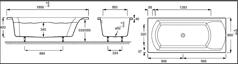 Технические характеристики • Размеры (см): 180 x 80 см • Материал: Акрил • Тип установки: Встраиваемые • Объем: 290