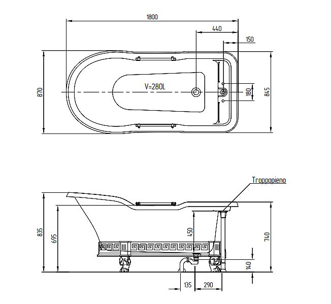 Объем: 280 литров до перелива